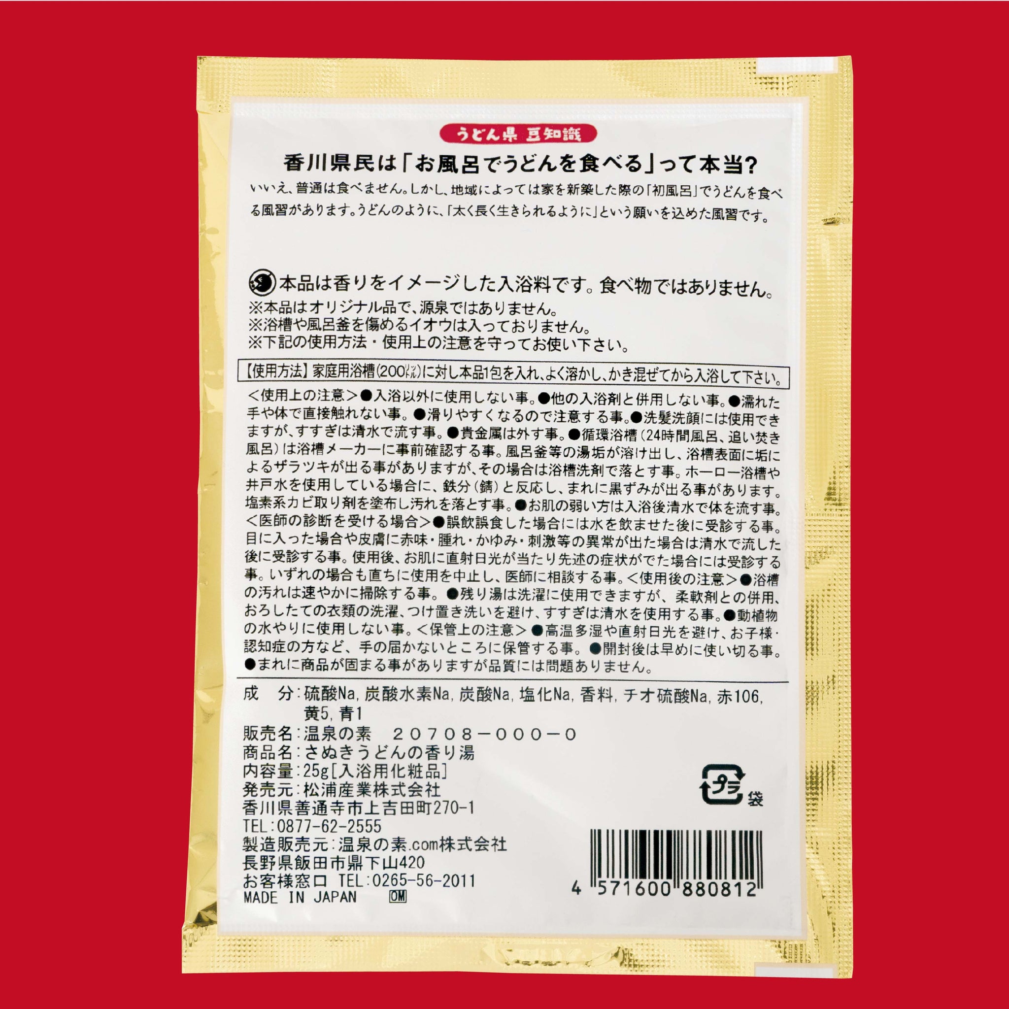 お風呂に投入いただくと、さぬきうどんの出汁の香りと色を再現したようなお湯になります